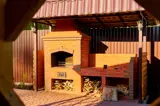 Step 5: You can use a hosepipe on the wall exterior by running it along to create a smooth mortar finish. Build your barbecue a further 2 or 3 courses up from the grill. Place a paving slab on top of your preparation area and fix in place with mortar to finish.