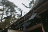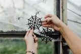 Thanks to their historical connection to witches, spiders are a great feature for outdoor Halloween decorations. Many shops with a Halloween offering will be selling fake cobwebs and plastic spiders of various sizes which can be draped around bushes, trees, lights and fences.